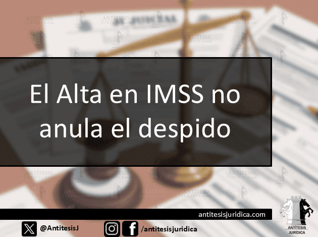 El IMSS no basta: por qué el registro no prueba la continuidad laboral en casos de despido; Despido injustificado: el error de creer que el IMSS es prueba suficiente; Relación laboral vs IMSS: lo que todo abogado debe saber sobre despidos; Criterio clave: el alta en el IMSS no desvirtúa el despido injustificado; Derecho laboral mexicano: mitos y verdades sobre el IMSS y los despidos; Patrones alerta: el IMSS solo no protege contra demandas por despido; Trabajadores: cómo defenderte cuando argumentan tu alta en el IMSS; Juicios laborales: por qué el informe del IMSS no es prueba concluyente; La verdad sobre el IMSS en casos de terminación laboral en México; Nueva jurisprudencia: límites del IMSS como prueba en despidos.