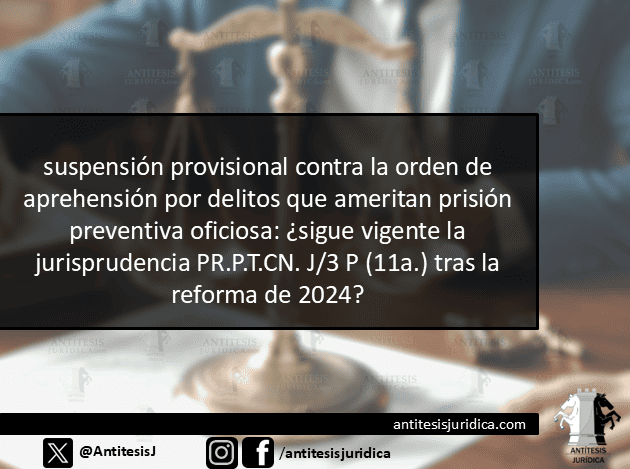 Suspensión Provisional contra la orden de aprehensión por delitos que ameritan prisión preventiva oficiosa: ¿Sigue vigente la Jurisprudencia PR.P.T.CN. J/3 P (11a.) tras la reforma de 2024?