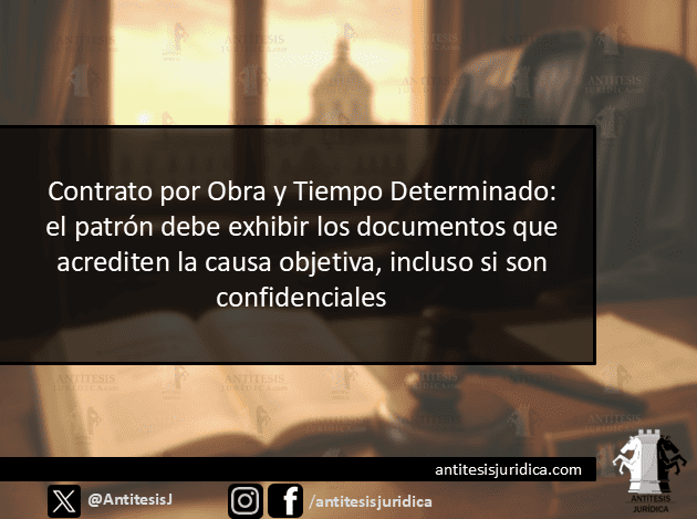 El Segundo Tribunal Colegiado del Séptimo Circuito determinó que los patrones deben exhibir en juicio los documentos que justifiquen un contrato por obra o tiempo determinado, incluso si contienen información confidencial o secreta. Según los artículos 37, 804 y 805 de la LFT, la carga probatoria recae en el empleador, quien debe acreditar la...